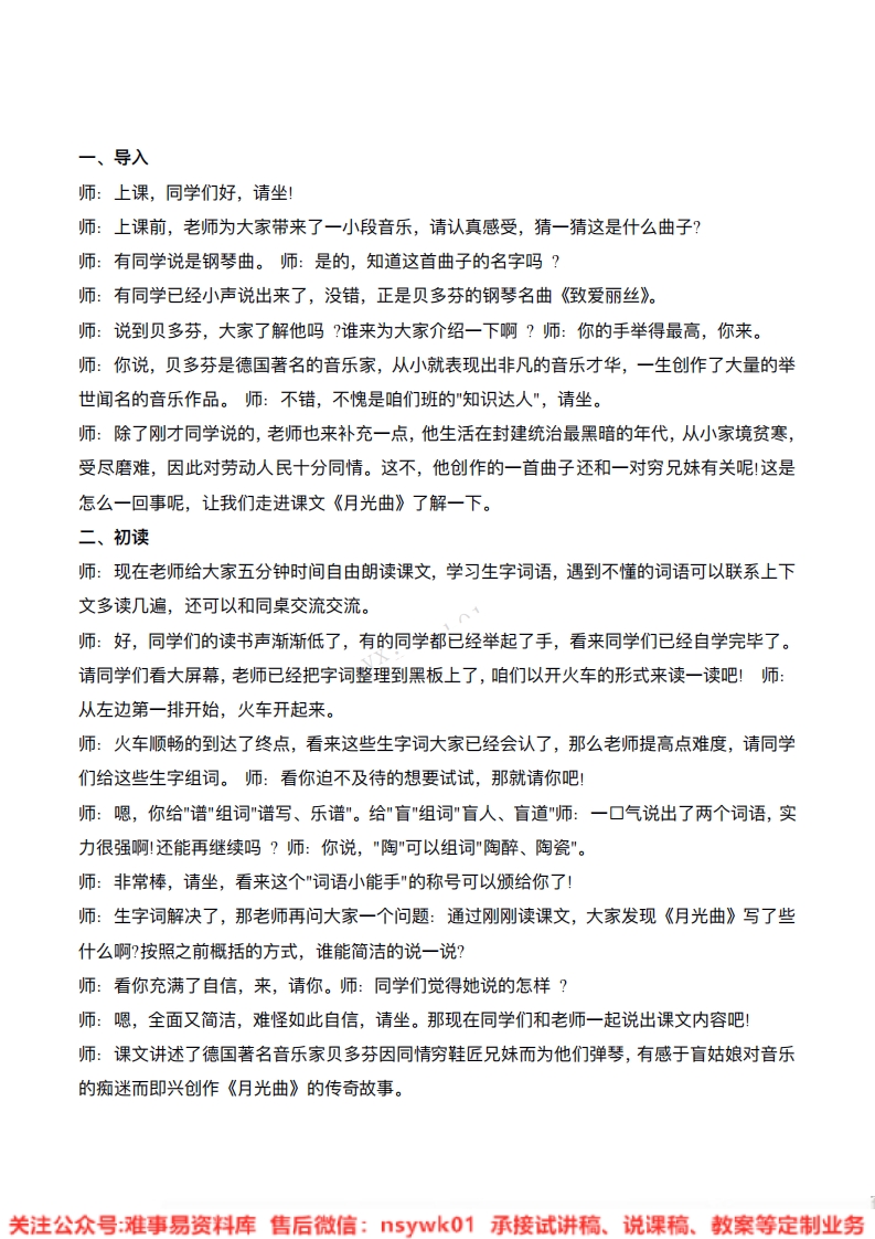首页试讲逐字稿小学语文统编版-小学语文6年级上册《月光曲》试讲逐字稿
