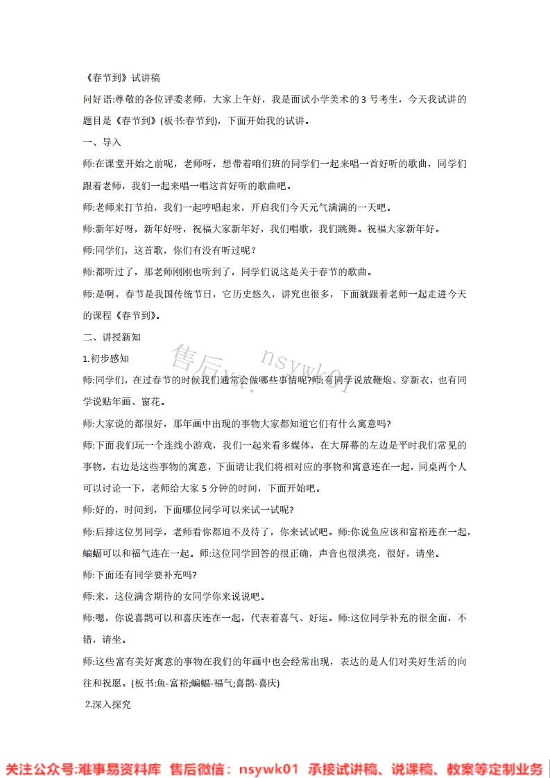 首页试讲逐字稿小学美术湘美版-美术四年级下册《1.春节到》试讲逐字稿