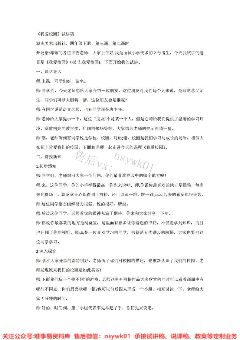 首页试讲逐字稿小学美术湘美版-美术四年级下册《4.我爱校园》试讲逐字稿