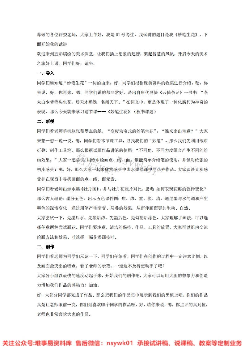 首页试讲逐字稿小学美术湘美版-美术四年级下册《9.妙笔生花》试讲逐字稿