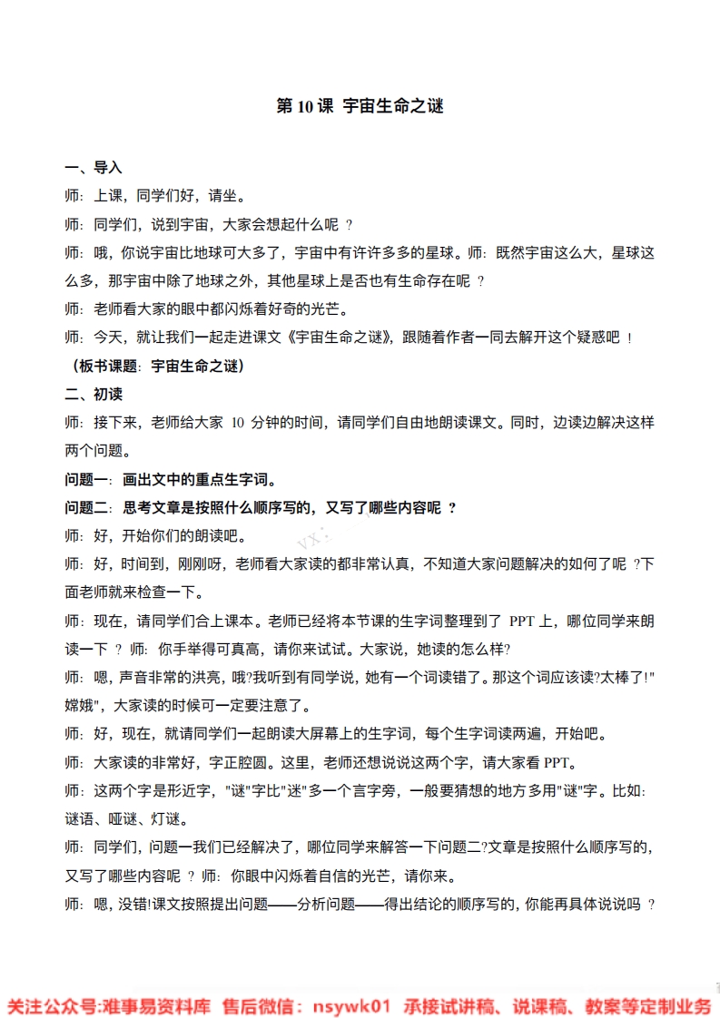 首页试讲逐字稿小学语文统编版-小学语文6年级上册《宇宙生命之谜》试讲逐字稿