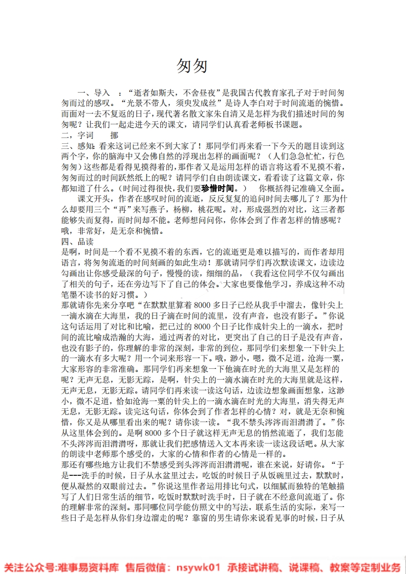 统编版-小学语文6年级下册《匆匆(原)》试讲逐字稿
