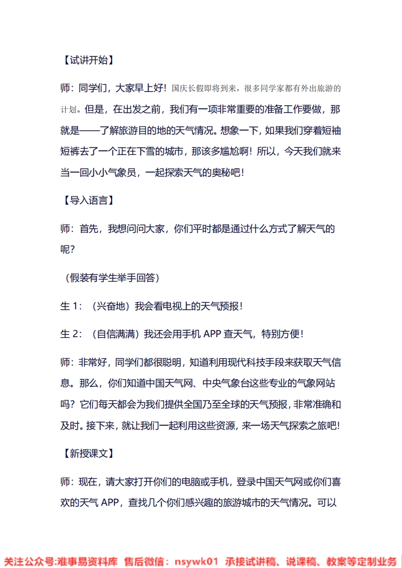 首页试讲逐字稿小学科学大象版-科学二年级上册《1.1变幻的天气》试讲逐字稿